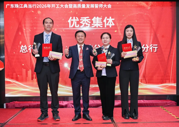 杨志伟董事长亲自为获奖者颁发荣誉牌匾和证书。总行营业部、车陂分行、海珠分行凭借出色的表现,超额完成全年目标任务,荣获“2025年度优秀集体”称号。同时,尹晨飞、张银蓉、何庆辉荣获“优秀个人”称号,收获了属于奋斗者的掌声与荣光。